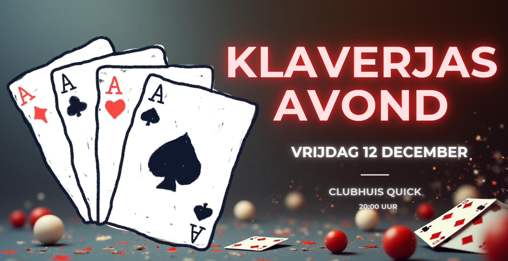 Alle leden van Quick zijn welkom om gezellig potje te komen klaverjassen. Meld je aan via onderstaande button of via [email protected]