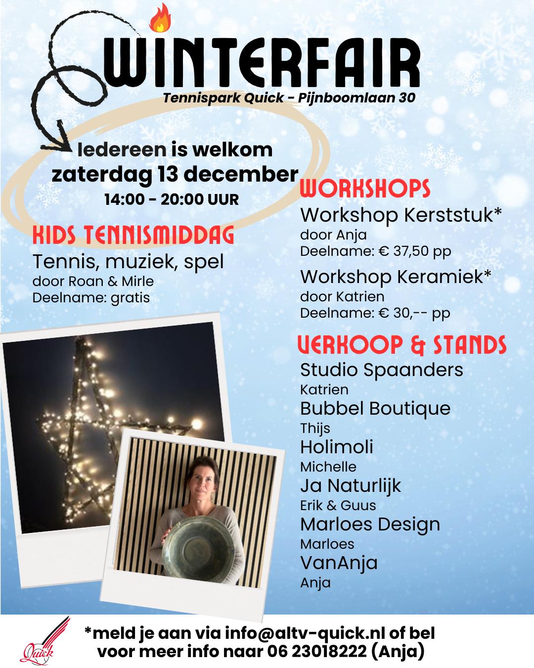 ALTV Quick gooit haar haren los en organiseert deze winter een heus 'Winterfair' met alles erop en eraan 🔥🎄☕. Iedereen is welkom, dus ook je familie en vrienden.