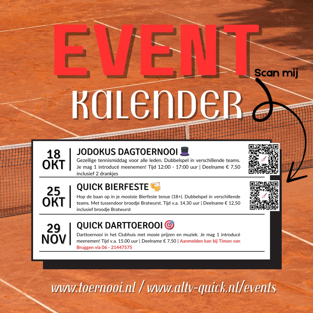 De avonden worden alweer iets korter en we kruipen weer langzaam een beetje naar binnen . Bij ALTV Quick blijven we natuurlijk gewoon lekker buiten tennissen, vorige jaren hebben meer dan bewezen dat dit kan en heerlijk is!!